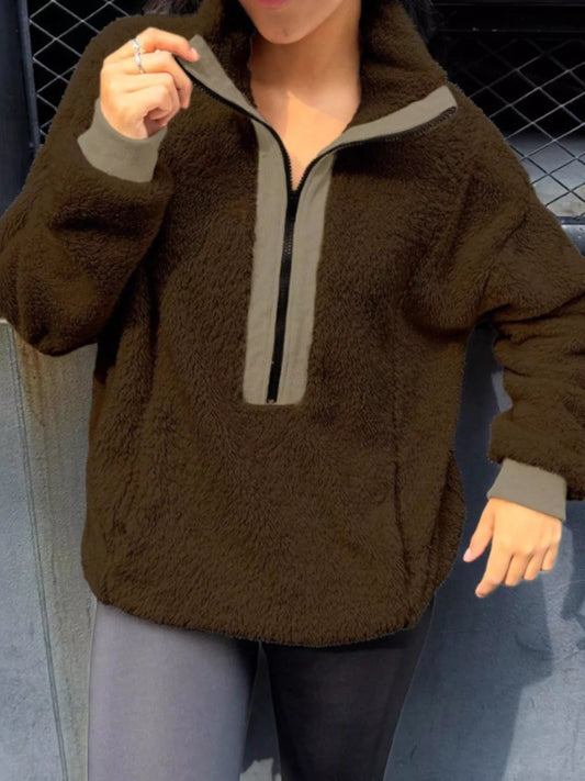 BiBi French Terry Knit Side Block Buttoned Henley Top