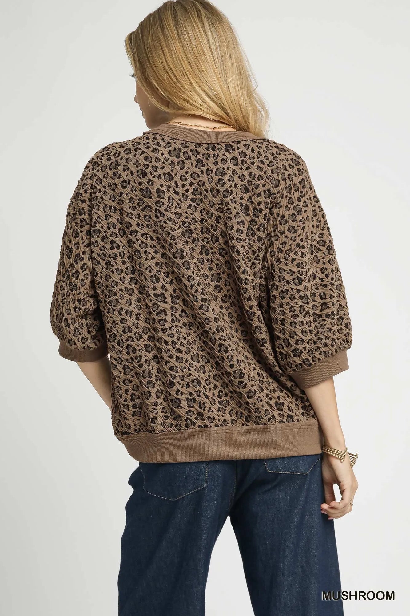 Umgee Oversized Leopard Round Neck Sweatshirt